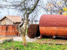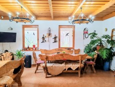 Vendég rész: fogadótér: 40 m2, konyha - feldolgozó tér - rendezvényterem kemencével: 70 m2, terasz: 60 m2